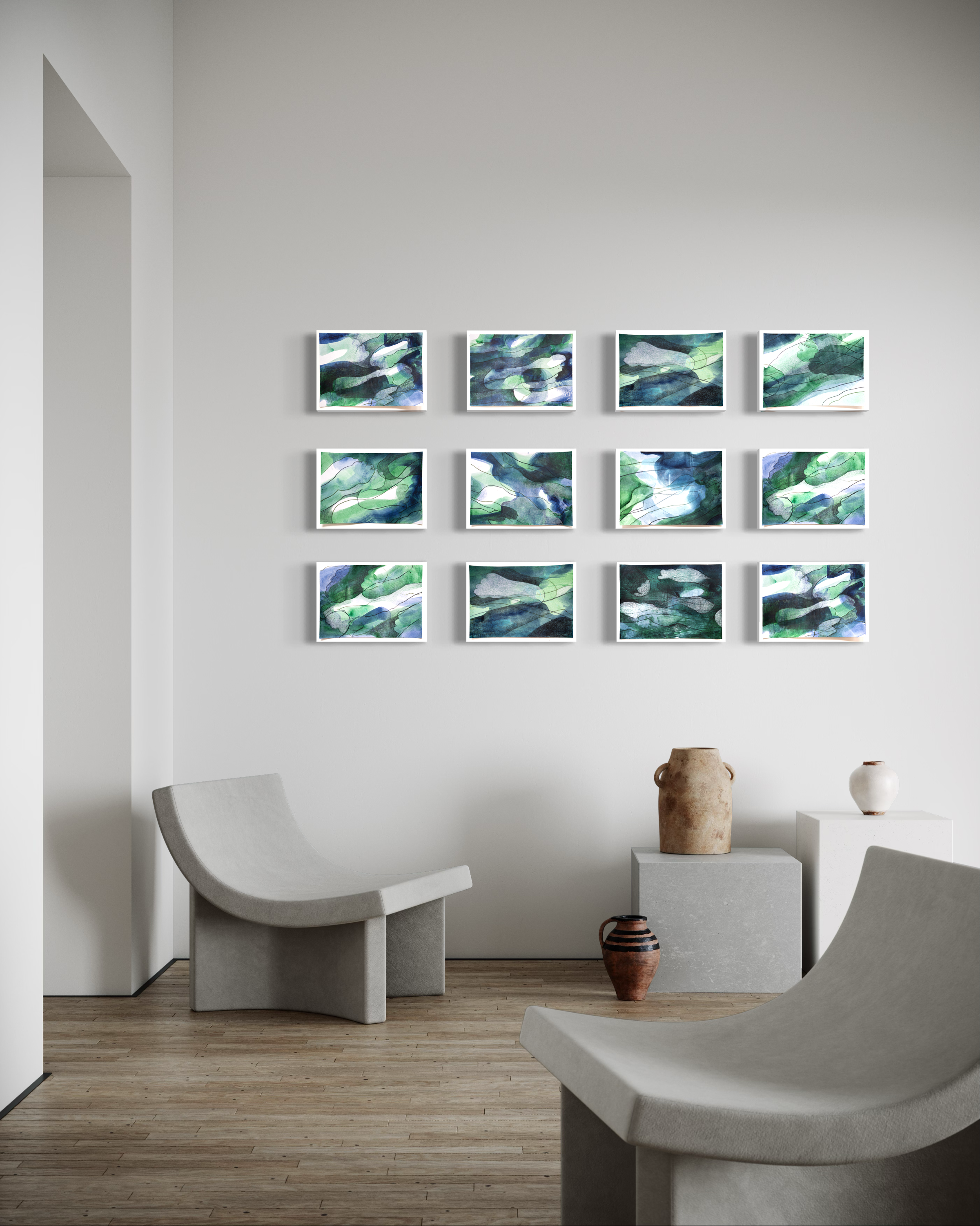 This series “What the Water Gave Me” was born out of that need, even though my mind agreed, my gut hesitated. While painting in nature, surrounded by water, I eventually found peace and renewal. The water was both calming and refreshing, helping me clear my head and follow my intuition. The series was unplanned, but the situation gifted it to me. This experience reminded me once again how important it is to let go and trust in intuition.