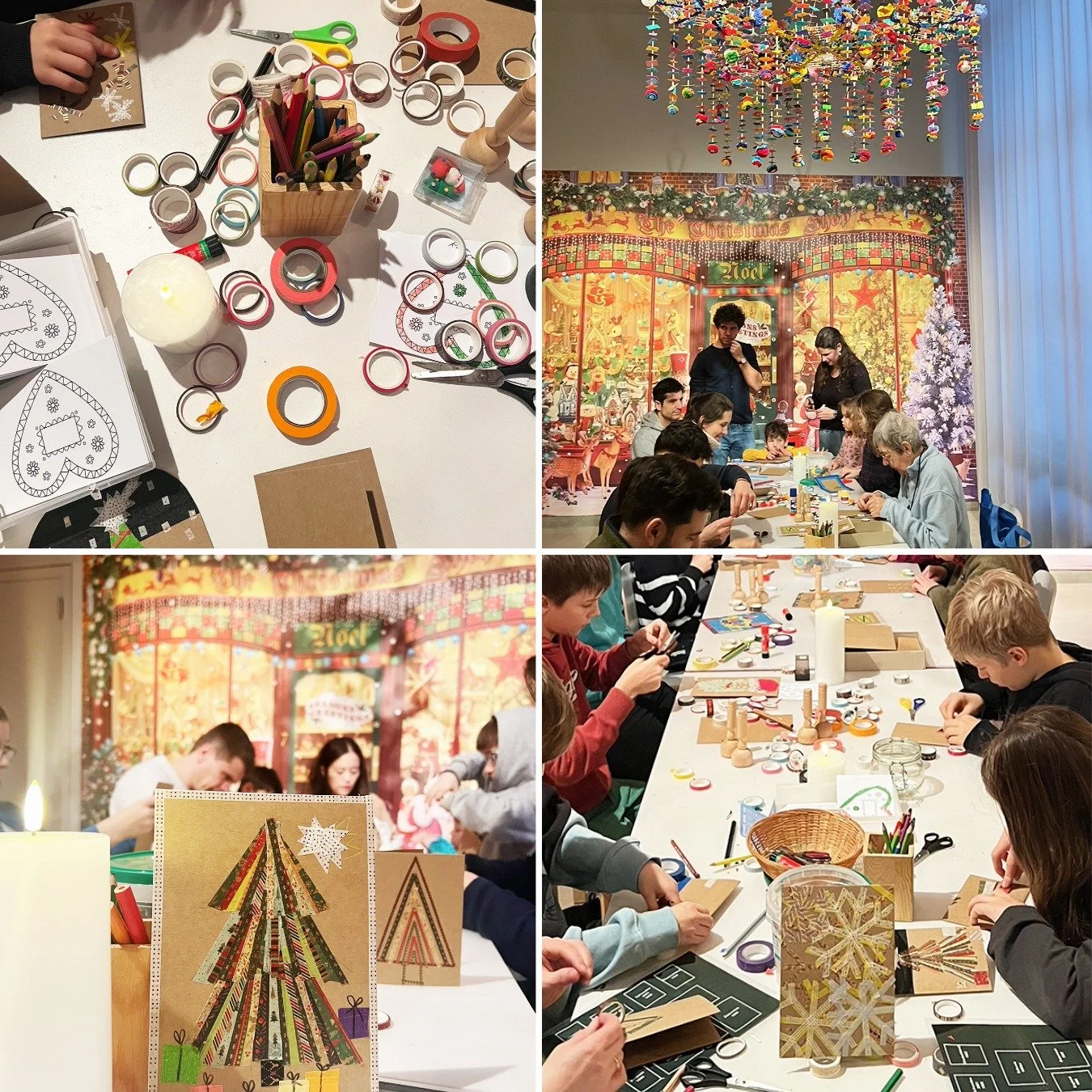 An allen Adventssamstagen öffnet die Weihnachtswerkstatt ihre Türen für Groß und Klein. Mit farbigen Tapes, bunten Stiften und besonderen Papieren entstehen einzigartige Weihnachtskarten – persönlich, kreativ und voller Ausdruck.