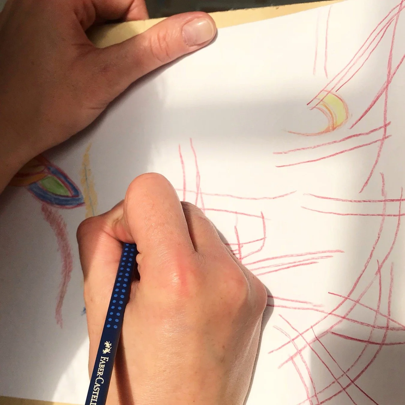 Anschließend füllt sich das weiße Blatt Schritt für Schritt mit Linien, Farben und Strukturen – ein Prozess, der Reflexion und Kreativität anregt.