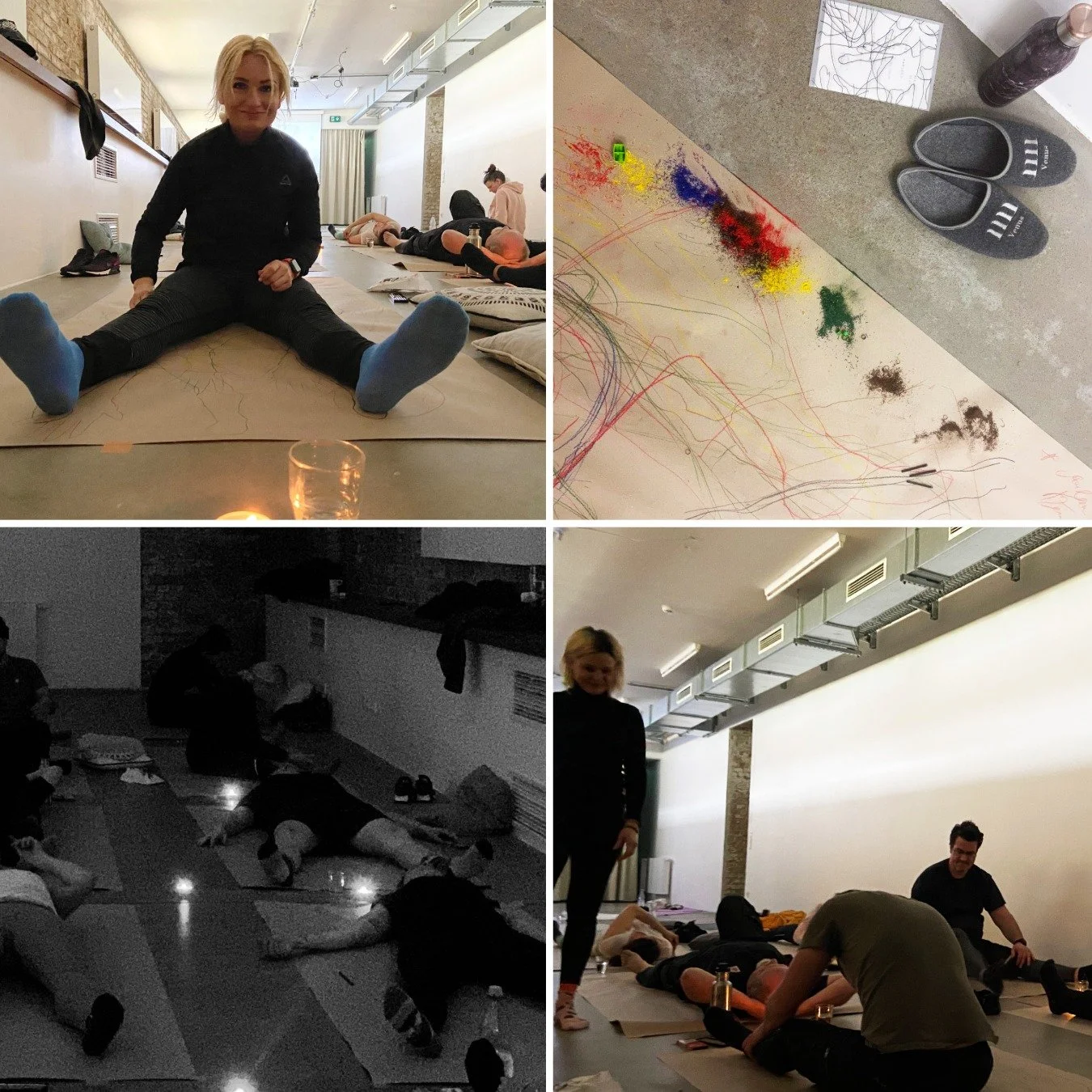 Durch Austausch, geführte Meditationen, körperzentrierte Übungen und gemeinsames Arbeiten entsteht ein Raum für bewusste Begegnung und kreativen Ausdruck.