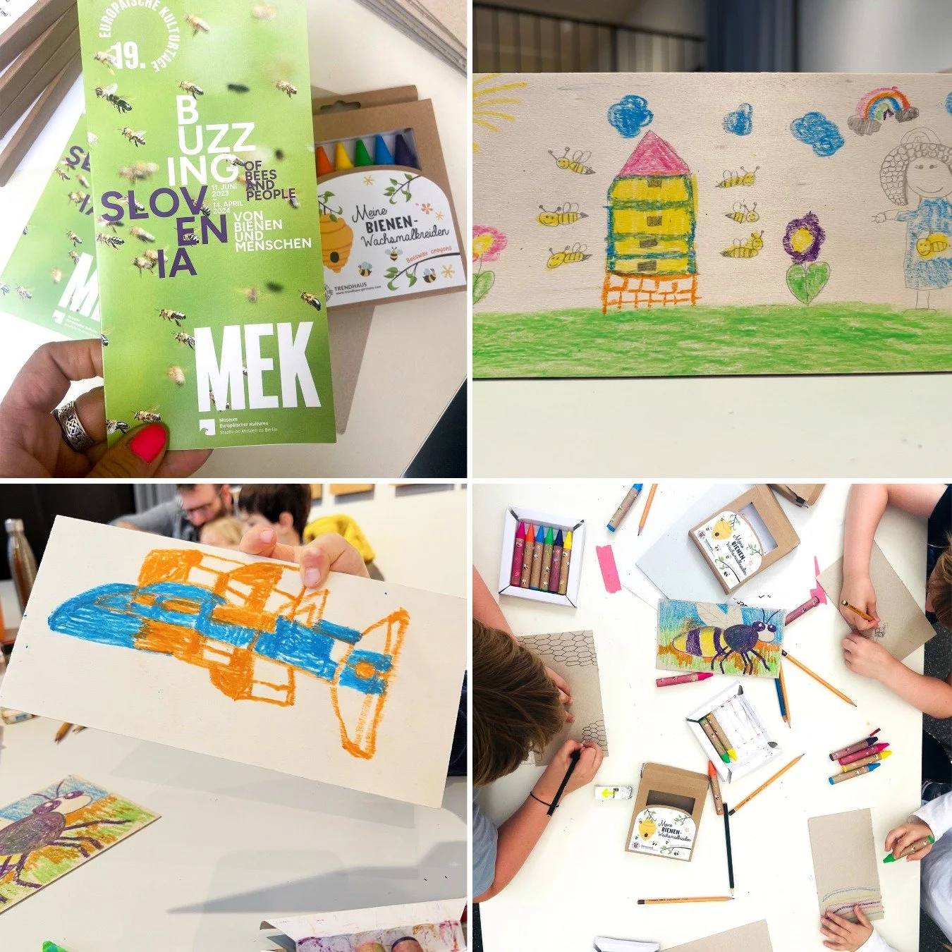 Was macht Bienen so besonders? In diesem Workshop tauchen Kinder in die Welt der slowenischen Bienenkultur ein. Sie entdecken, wie Bienen leben, wohnen und arbeiten – und warum sie für uns so wichtig sind. Ausgangspunkt ist die Ausstellung „Buzzing Slovenia“, in der sie spannende Objekte erkunden, Geschichten hören und herausfinden, wie Bienen in Slowenien organisiert sind, welche Produkte sie herstellen und welche Gefahren ihnen drohen. Im kreativen Teil gestalten die Kinder ein eigenes Bienenstock-Stirnbrettchen, inspiriert von der slowenischen Tradition. Dabei lernen sie spielerisch, genau hinzusehen, mit Bienenwachs zu arbeiten und ihre Ideen umzusetzen – mit Freude, Neugier und Teamgeist.